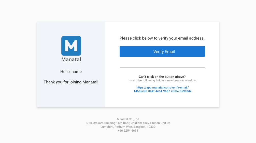 Manatal Email Notification Component — this component will be embedded in an automatic email sent out to newly registered user.